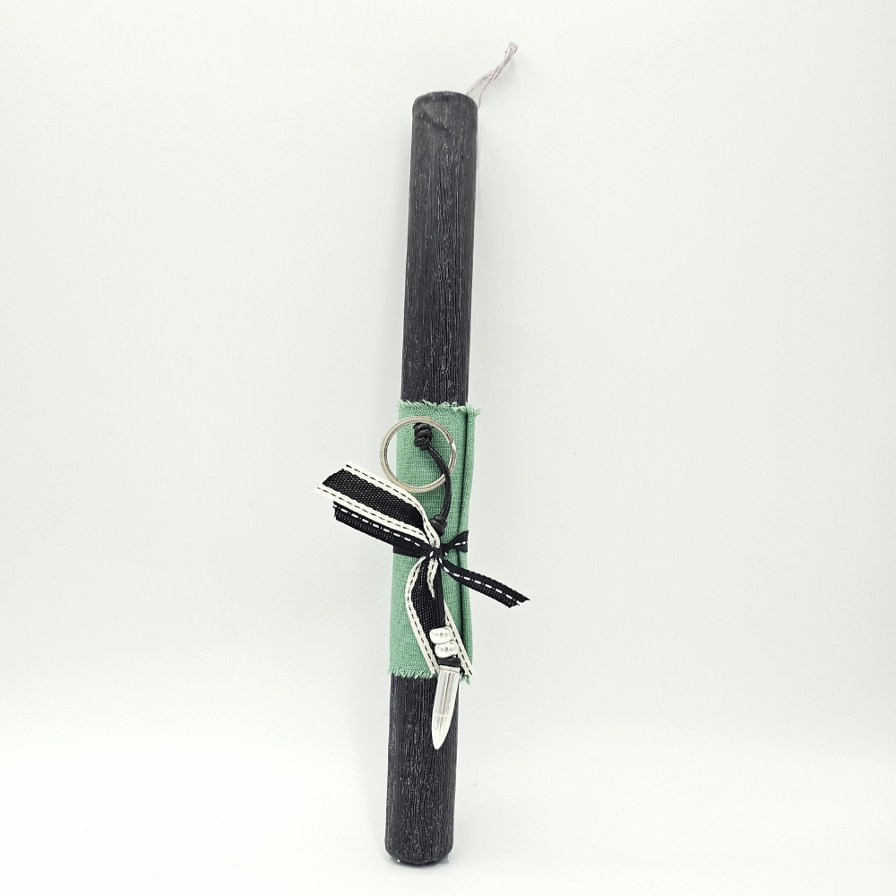Χειροποίητη αρωματική πασχαλινή λαμπάδα στρόγγυλη, ξυστή σε χρώμα μαύρη.