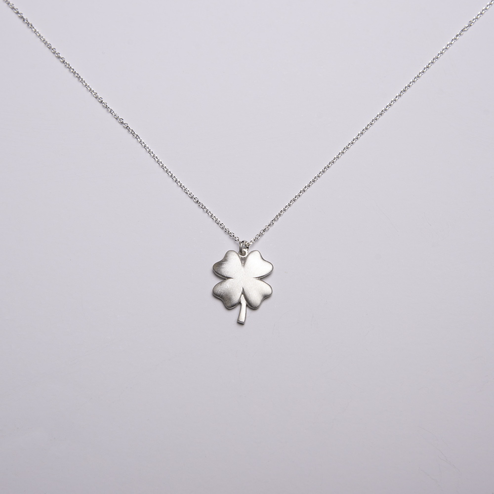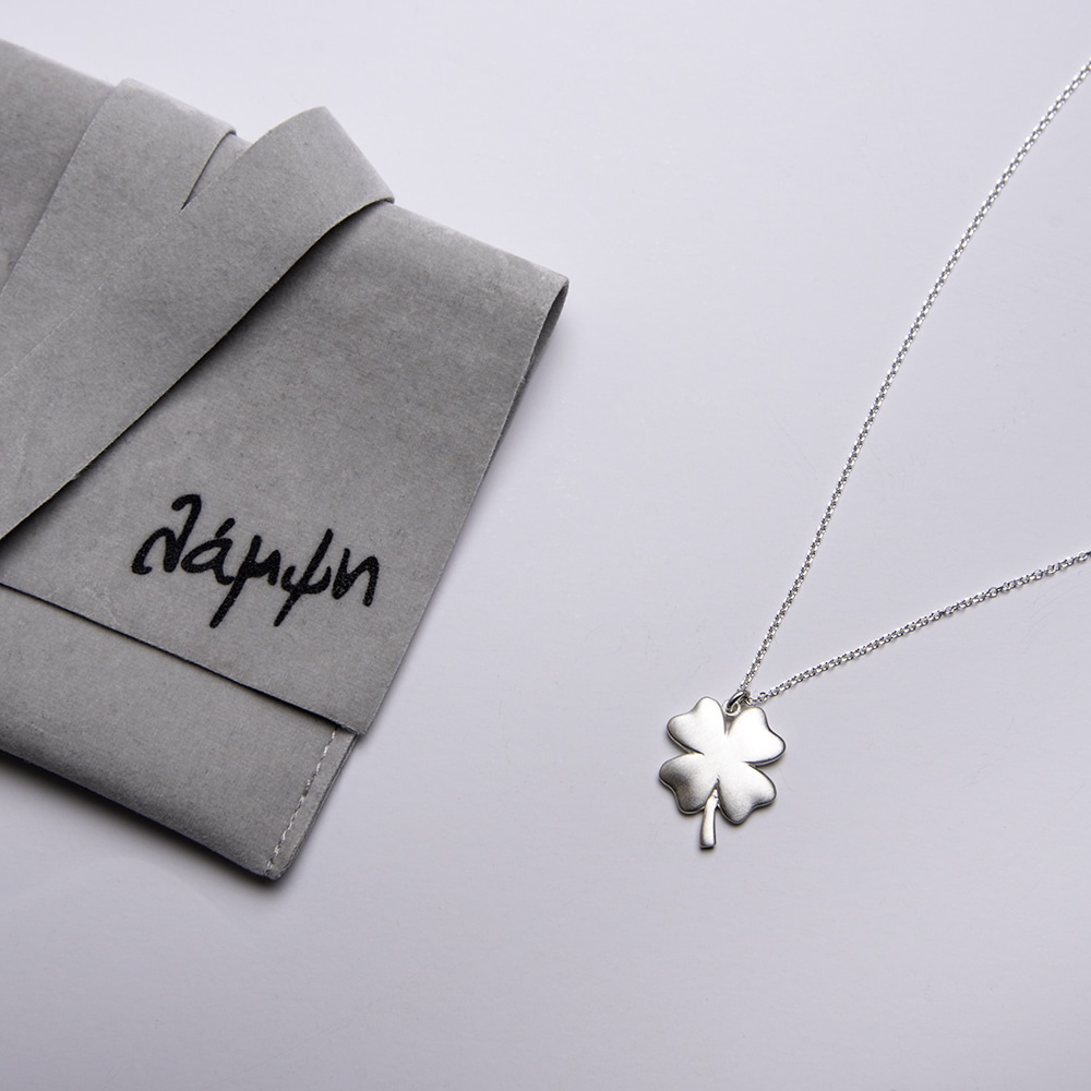 Μενταγιόν τετράφυλλο τριφύλλι ματ από ασήμι 925 και διπλό κούμπωμα.