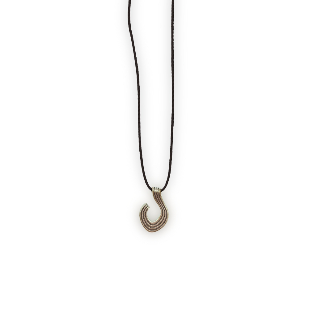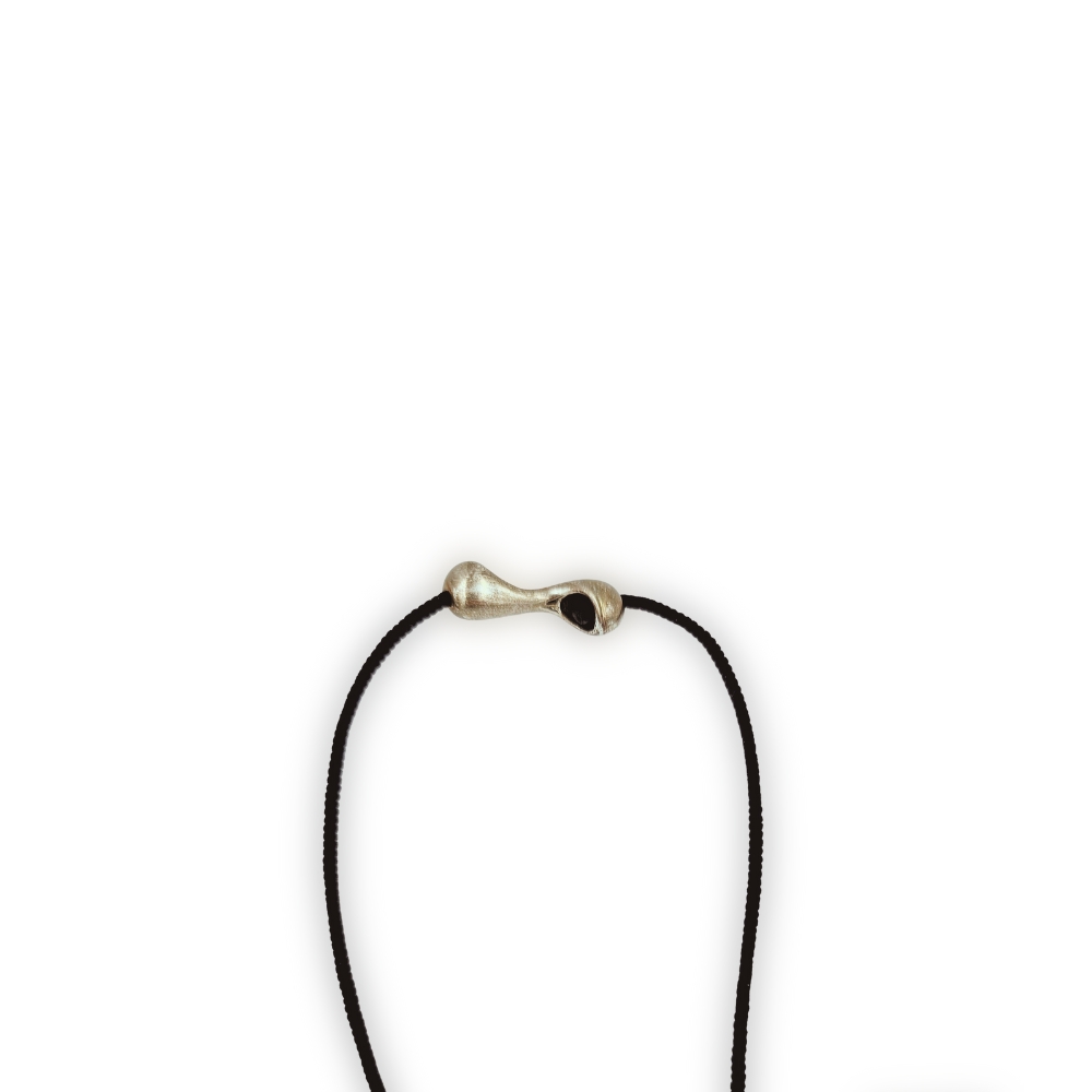 Κρεμαστό κολιέ με αφηρημένο σχέδιο σε ασημί χρώμα, με μαύρο κορδόνι, το μήκος προσαρμόζετε στο ύψος που επιθυμείτε.