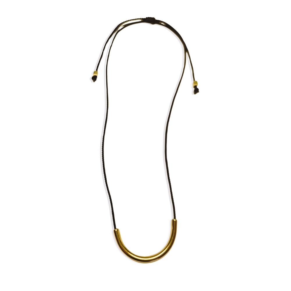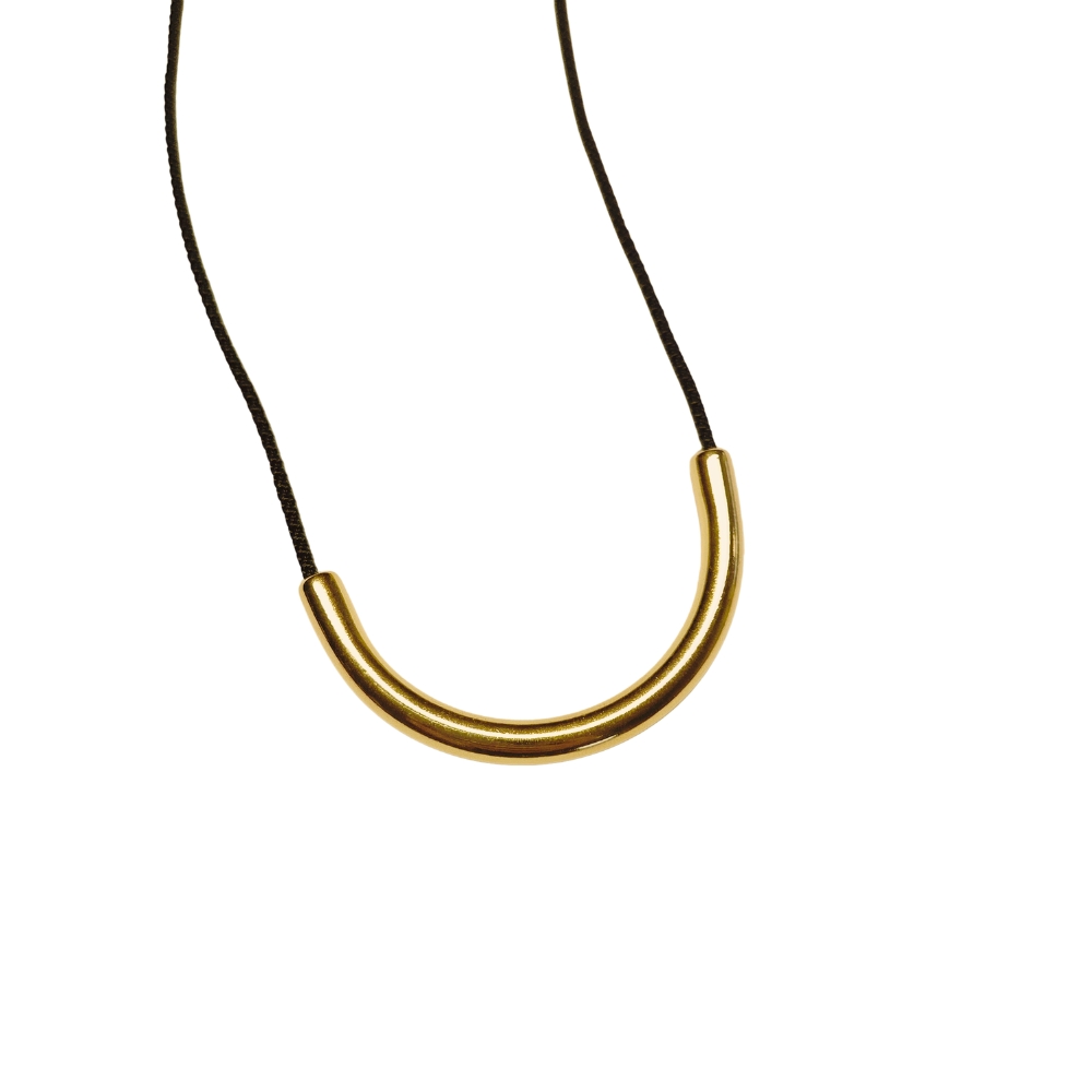 Κρεμαστό κολιέ και στοιχείο από ορείχαλκο μινιμαλιστικό σχέδιο, με μεταλλική μπάρα σε σχήμα καμπύλης.